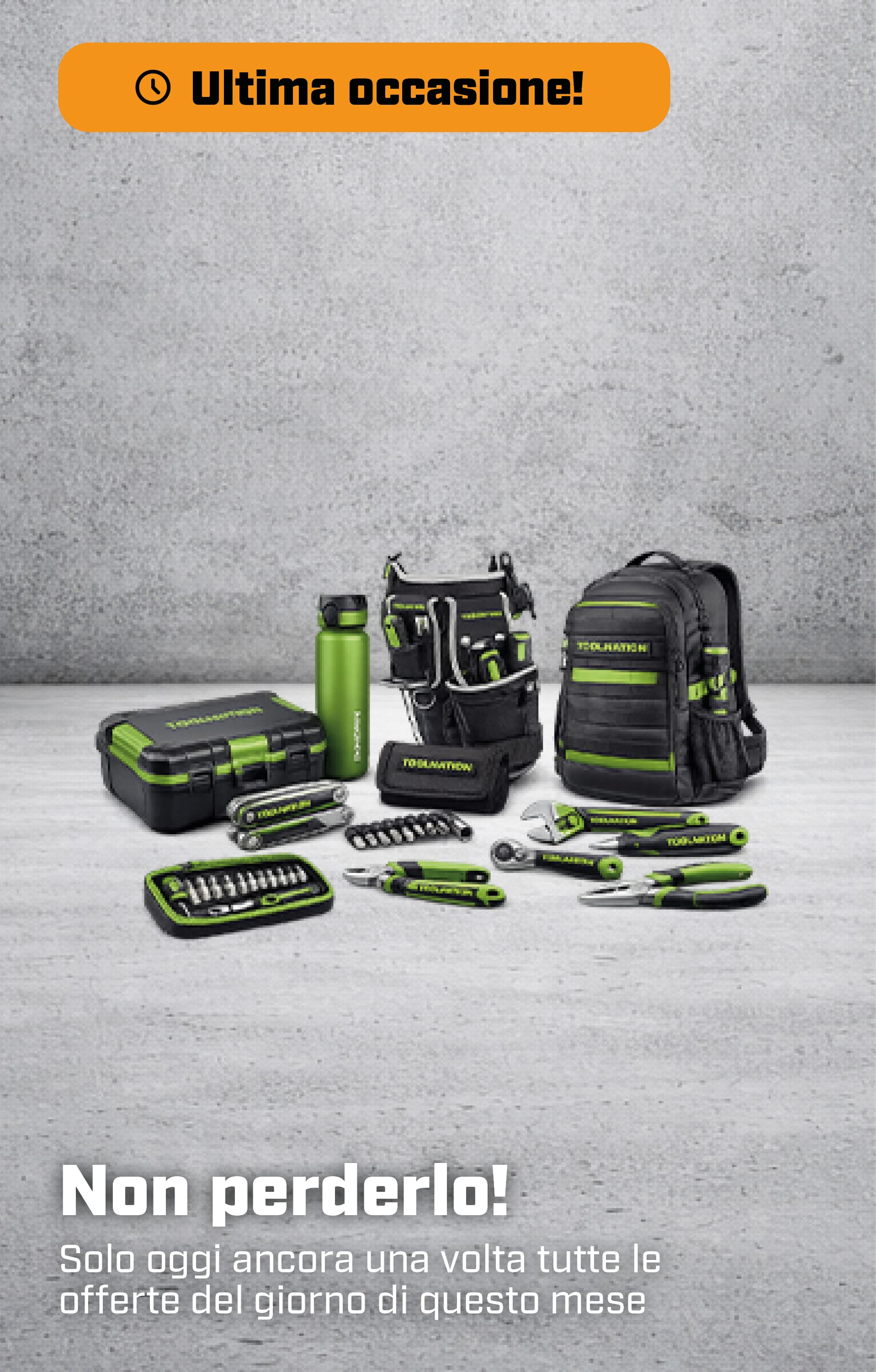 Toolnation è il Suo partner di fiducia per aziende e artigiani che richiedono la massima qualità. Offriamo un assortimento completo di utensili, macchine e accessori professionali dei migliori marchi, con consegna rapida e consulenza qualificata.